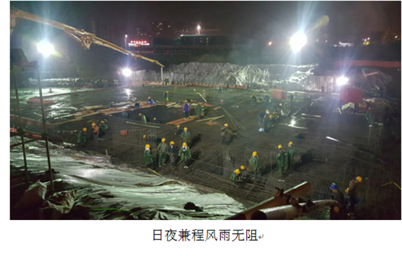 五月伊始,公司各兄弟項目部不斷傳來喜訊:蕪湖萬科城、信達天御、華府五期和森林城C4均傳來捷報,我信達公園里項目部也不甘示弱,在兄弟們?nèi)找辜娉田L(fēng)雨無阻的拼搏下,終于于2016年5月30日完成售樓部結(jié)構(gòu)封頂任務(wù),圓滿完成合同節(jié)點工期。信達.公園里項目S12#樓(售樓部)土建工程施工項目位于合肥市濱湖新區(qū)杭州路與廬州大道交口,總建筑面積4248.30平方米,占地面積約1900平方米,建筑高度度15.35米。結(jié)構(gòu)類型為現(xiàn)澆框架結(jié)構(gòu),地下1層為下沉庭院、商業(yè),負一層層高4.5米,地上3層為商業(yè),一層層高5.6米,二層層高4.8米,三層層高4.5米。信達.公園里項目S12#樓(售樓部)項目部,開工日期2016年4月15日,結(jié)構(gòu)封頂工期45天。該工程業(yè)態(tài)豐富,結(jié)構(gòu)形式復(fù)雜,且?guī)в幸粚拥叵率遥畹蛯痈?.5米,局部為高支模,且為汽車吊作業(yè);在工程施工階段,恰逢合肥陰雨天氣,45天的工期里下了十幾天的雨,且在施工過程中設(shè)計圖紙不斷的進行變更,在如此艱難的客觀條件下,項目部兄弟無畏艱難,齊心協(xié)力,通過增加班組的人力和物力投入,日夜兼程、風(fēng)雨無阻,終于克服的一切困難,圓滿的完成任務(wù),給業(yè)主交出了一份滿意的答卷。