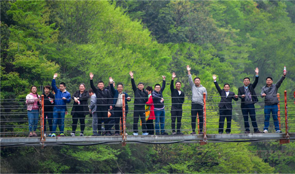 4月13日,集團(tuán)綜合部組織2018年度工作五周年以上 “同心同路”獲獎(jiǎng)員工開(kāi)展為期兩天的金寨行活動(dòng),欣賞著沿途秀麗的風(fēng)景,員工們一路上放飛心情,在山谷中、吊橋上、小溪邊留下了他們的歡聲笑語(yǔ),在烈士紀(jì)念館中帶走了烈士們不怕?tīng)奚⒏矣趧倮母锩瘢谌宋呐c自然景觀中感受歷史的厚重底蘊(yùn)與大自然的波瀾壯麗。